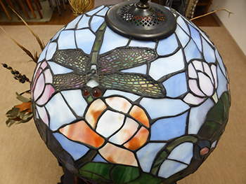 トンボと蓮の花が、美しいステンドグラス
