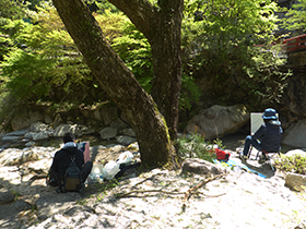 左手、中川さんの油彩、右手は河野さんのアクリル画