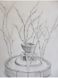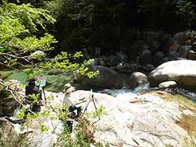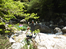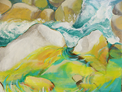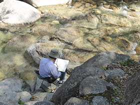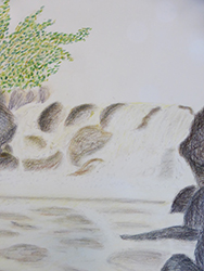 静かで美しい水と石、丹羽さんの色鉛筆画