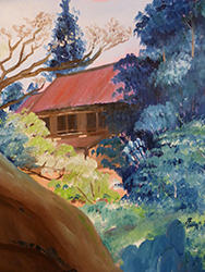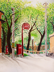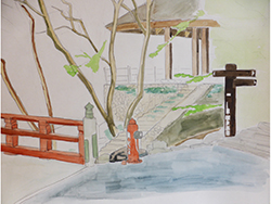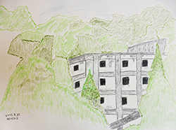 下は、窓が印象的な別の廃屋、入口さんの色鉛筆画